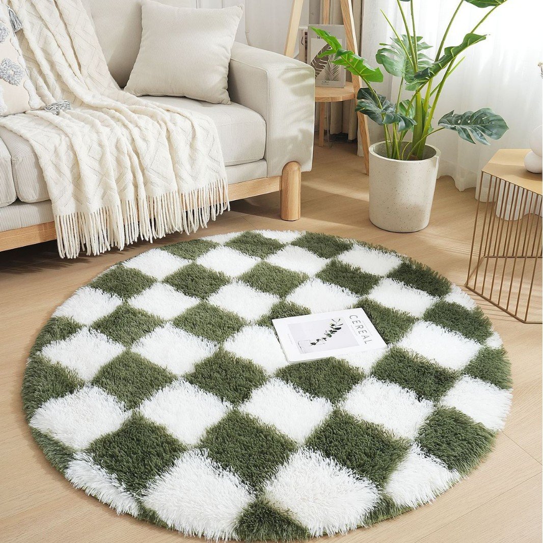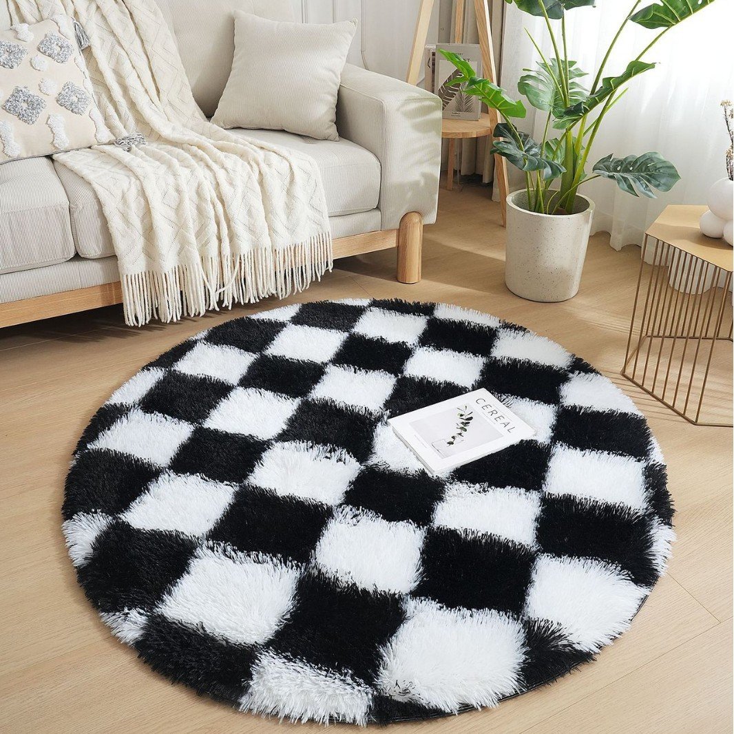 Round Checkered PV Fur Carpet